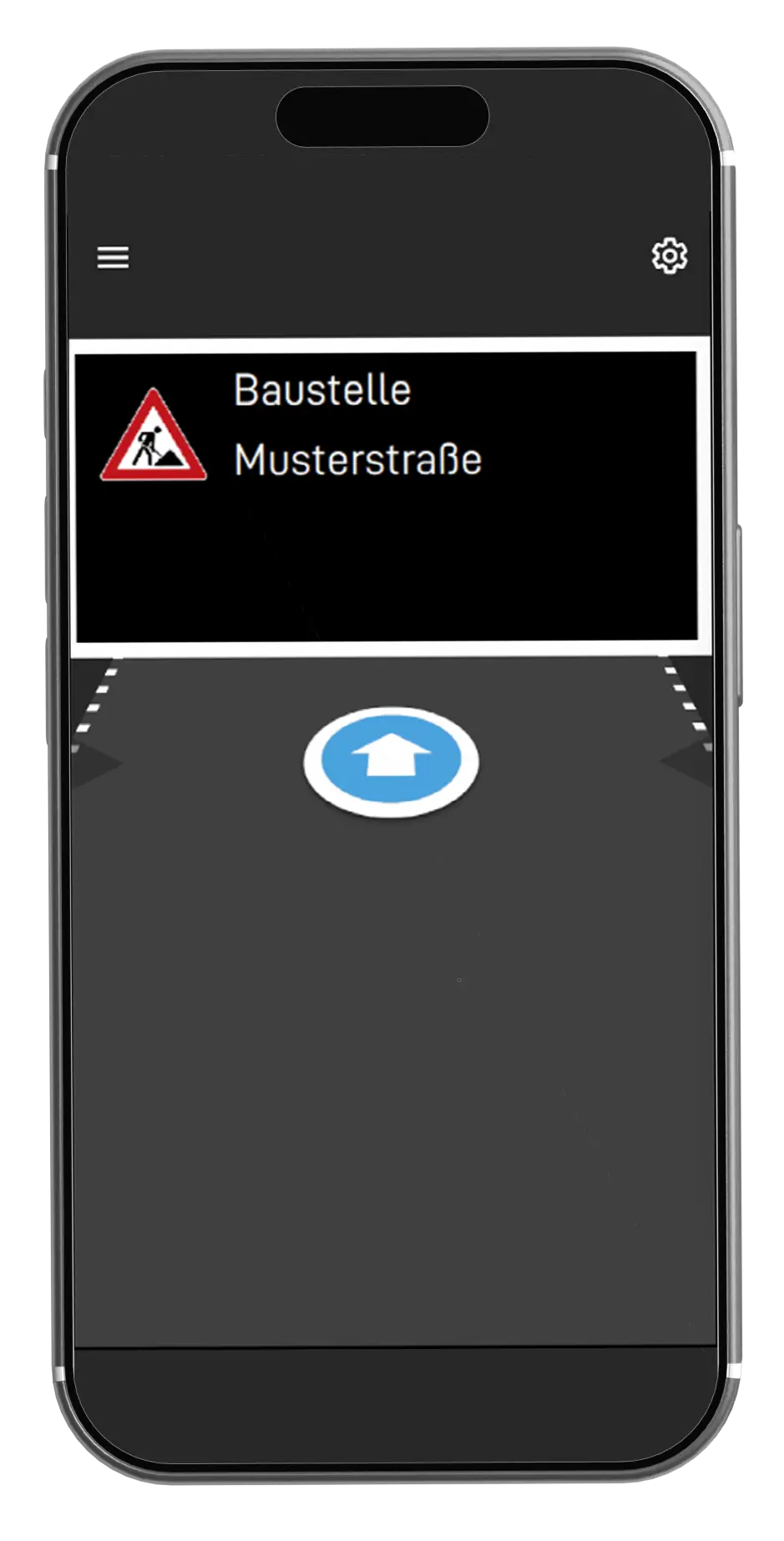 Baustelleninformationen, Empfehlungen oder C-ITS-Inhalte (z. B. Informationen aus DENM oder IVIM) können als Infotext über virtuelle Tafeln im trafficpilot angezeigt werden.